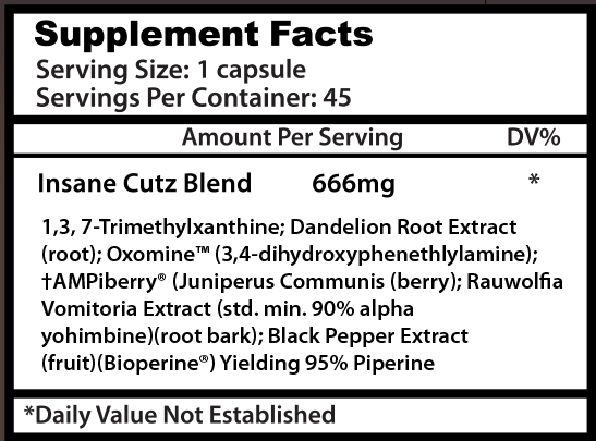 Insane Cutz no en vano es mundialmente conocido como el “asesino de grasa” más letal del mercado. Porque gracias a su efecto termogénico permite que tu cuerpo pueda deshacerse por fin de ese molesto tejido adiposo que ha almacenado durante años.